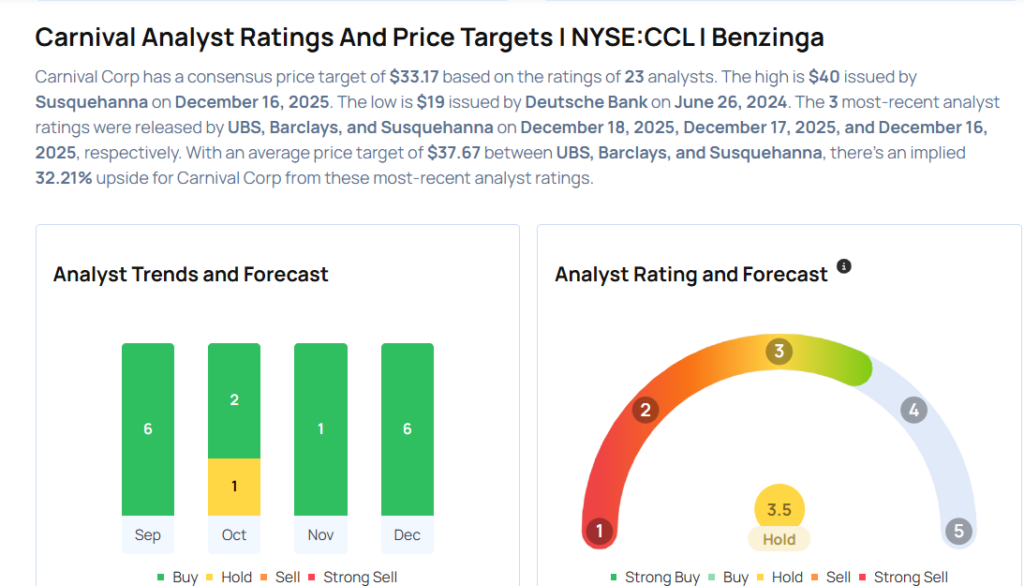 - UBS analyst Robin Farley maintained a Buy rating and raised the price target from $35 to $37 on Dec. 18, 2025. This analyst has an accuracy rate of 76%.