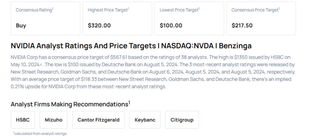 - HSBC boosted NVIDIA Corporation (NASDAQ:NVDA) price target from $200 to $320. HSBC analyst Frank Lee upgraded the stock from Hold to Buy. Nvidia shares closed at $182.17 on Tuesday. See how other analysts view this stock.