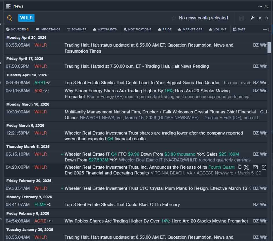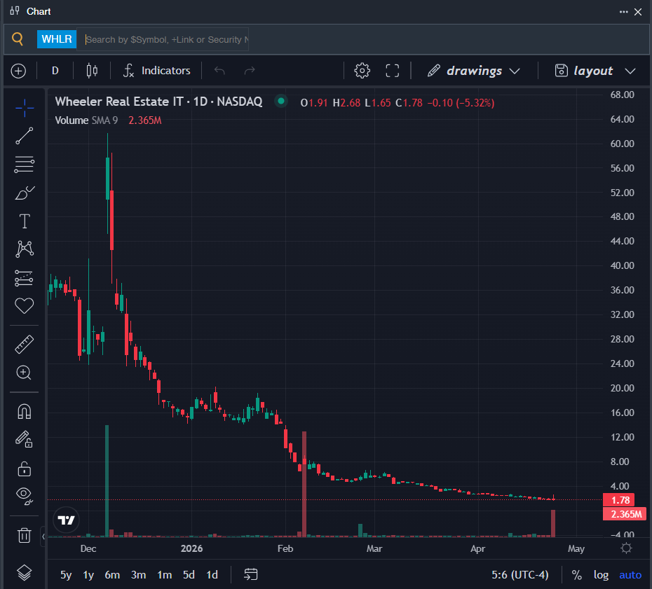 - WHLR Price Action: Shares of Wheeler Real Estate Investment Trust fell 5.3% to close at $1.78 on Friday.